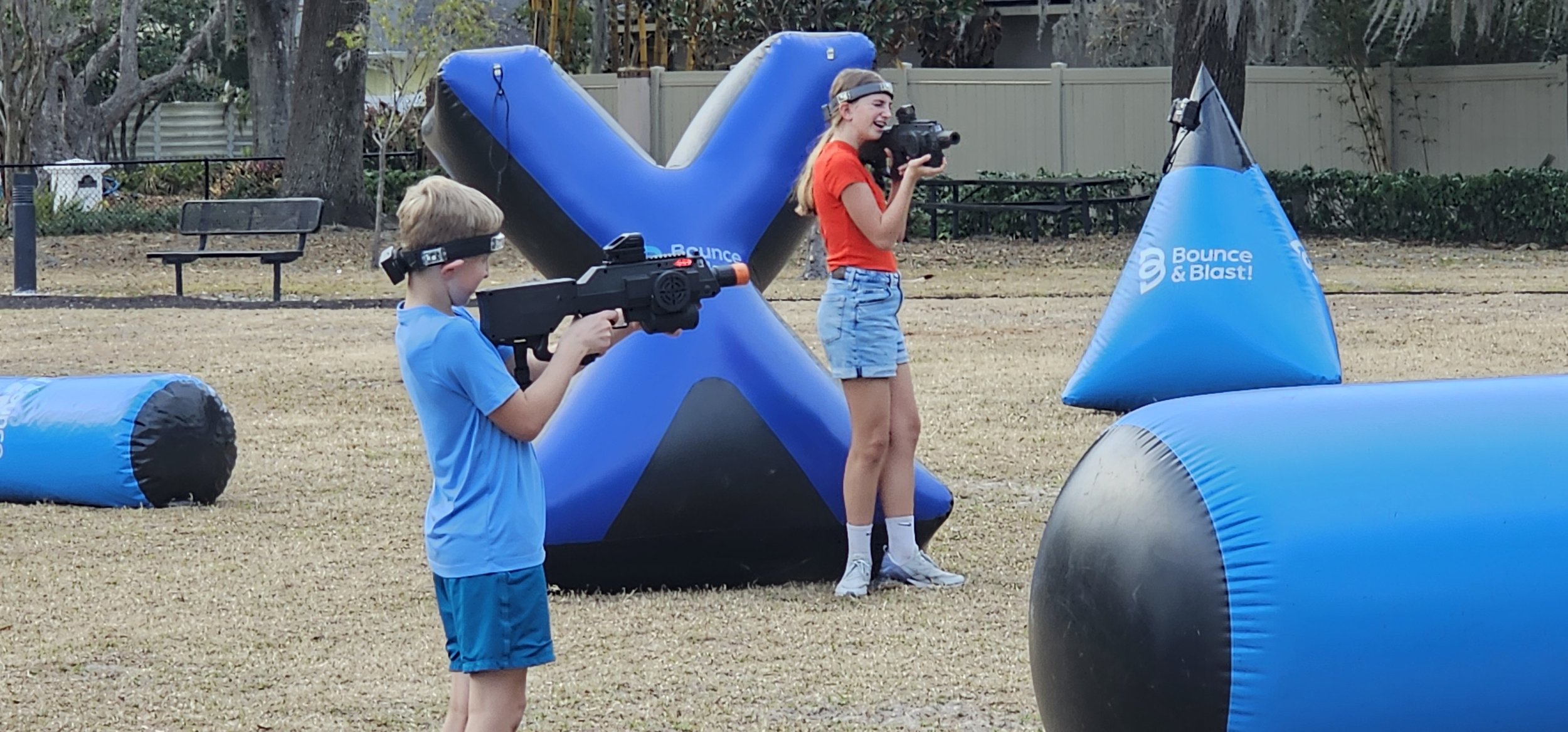 Bounce and Blast brings the excitement of Elite Mobile Laser tag straight to your location! Whether it’s your backyard, a nearby park, or an indoor venue, we’ll transform your space into an action-packed arena using state-of-the-art laser tag equipment. Ready to level up your next party or event with an unforgettable adventure your guests will be talking about long after it’s over?
